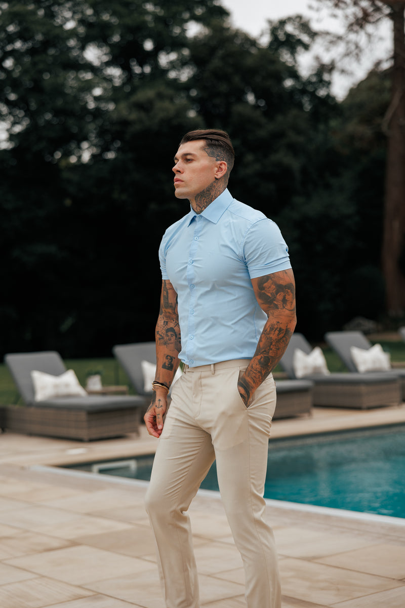 Muscle Fit Advanced Stretch Powder Blue Short Sleeve with Cutaway Collar - FS1162