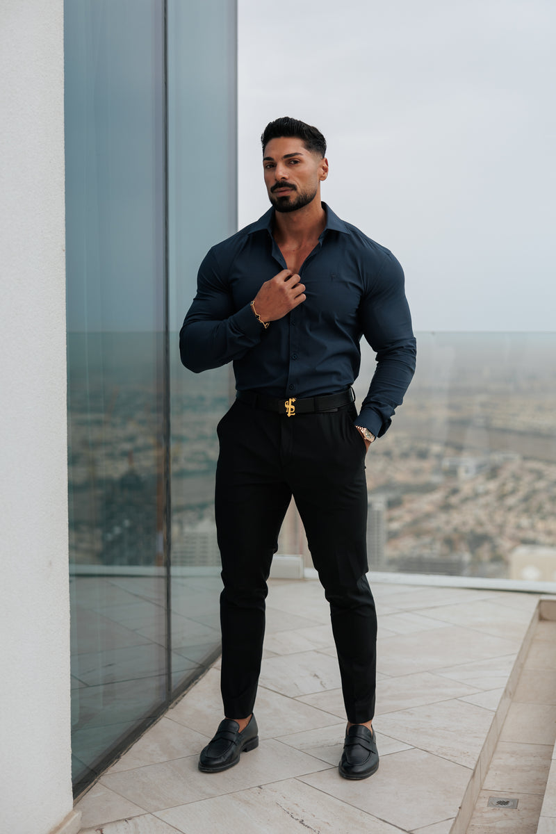 Muscle Fit Advanced Stretch Navy with Cutaway Collar - FS1168